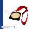 Комплектация: Медаль (Латунированная сталь), Жаккардовая лента, Подарочный футляр.