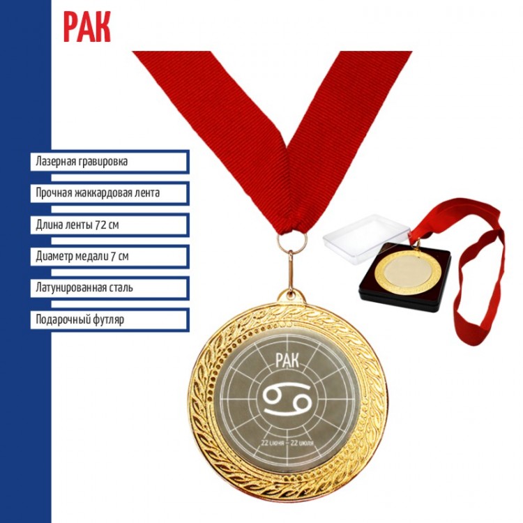 Комплектация: Медаль (Латунированная сталь), Жаккардовая лента, Подарочный футляр.