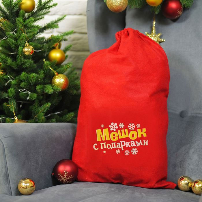 Большой мешок для подарков прекрасно подойдёт для новогодних сюрпризов, создавая атмосферу праздника и волшебства.