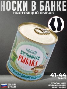 Мужские носки в банке "Настоящий рыбак - это оригинальный и практичный подарок. Герметичная упаковка в виде консервной банки защищает носки от влаги, а качественные материалы гарантируют комфорт и долговечность.