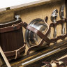 Упаковка: Футляр–столик из массива сосны. Ручка из джутового каната 8 мм. Внутренняя отделка: мешковина, кожа.