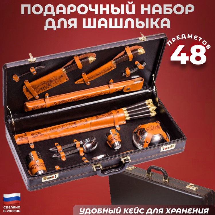 Подарочный набор для шашлыка "Лесной" в кейсе (48 предметов) - описание товара