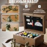 Эксклюзивный швейный набор с элементами русских сказок в деревянной шкатулке станет ценным подарком и украшением дома.
