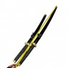 Ослаблен путём утоньшения хвостовика в месте крепления с клинком. Не рекомендуется использовать для рубки. Твёрдость стали по Роквеллу (HRC): 20.