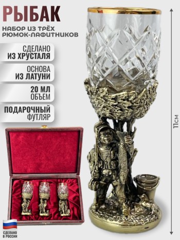 | Комплектация | 3 рюмки-лафитника, Подарочный футляр |