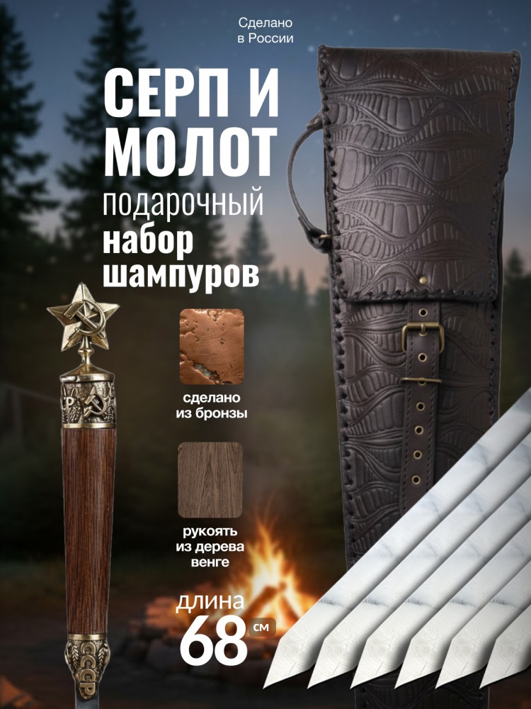 Подарочный комплект шампуров идеально подходит для отдыха на природе, дачи, рыбалки или туристических походов. Это отличный подарок на день рождения, Новый год, 23 февраля, юбилеи и другие памятные даты. Высокое качество и надежность гарантируют удобство использования. Подарочный набор шампуров станет незаменимым спутником для вашего барбекю, гриля и шашлыка.