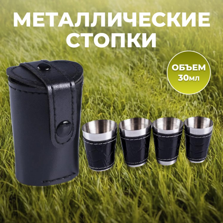 Набор из четырёх стопок с оплёткой в чехле - элегантное и практичное решение для любителей крепких напитков, идеально подходит для вечеринок и путешествий.