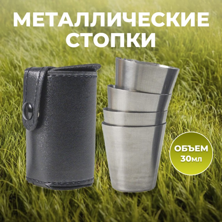 Набор из четырёх металлических стопок в чёрном чехле, 30 мл. Из пищевой нержавеющей стали.