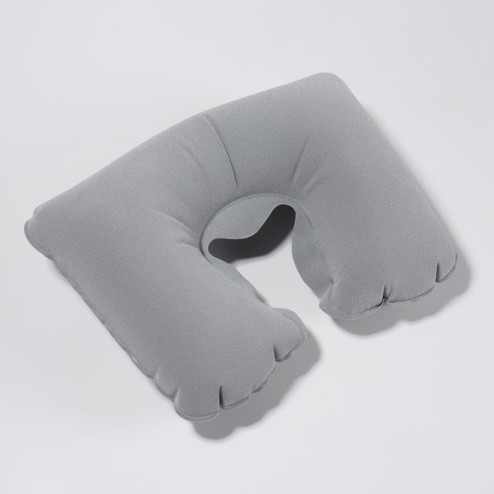 Удобная надувная подушка серого цвета станет незаменимым аксессуаром в дальних поездках.