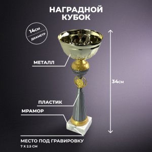 Наградной кубок за участие в соревнованиях - это необычный и оригинальный сувенир для победителя. Используется для награждения призеров массовых мероприятий: детских шуточных спартакиад, свадебных конкурсов или корпоративных праздников. Памятные вознаграждения в благодарность за усердие в достижении результата подойдут для любого турнира или состязания, где нужен маленький приз для участника-отличника.