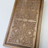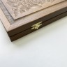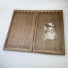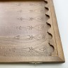 Материалы: корпус - массив бука, фишки - шпон (красное дерево, граб), зары (кости) - пластик