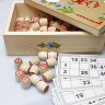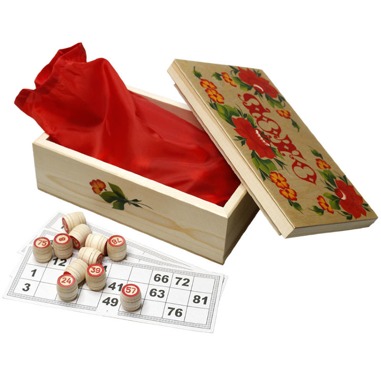 Ход игры: Ведущий, тщательно перемешав бочонки, достаёт из мешочка один из них и объявляет номер. Каждый игрок проверяет и при наличии номер закрывает его и так до тех пор, пока счастливчик не станет победителем.