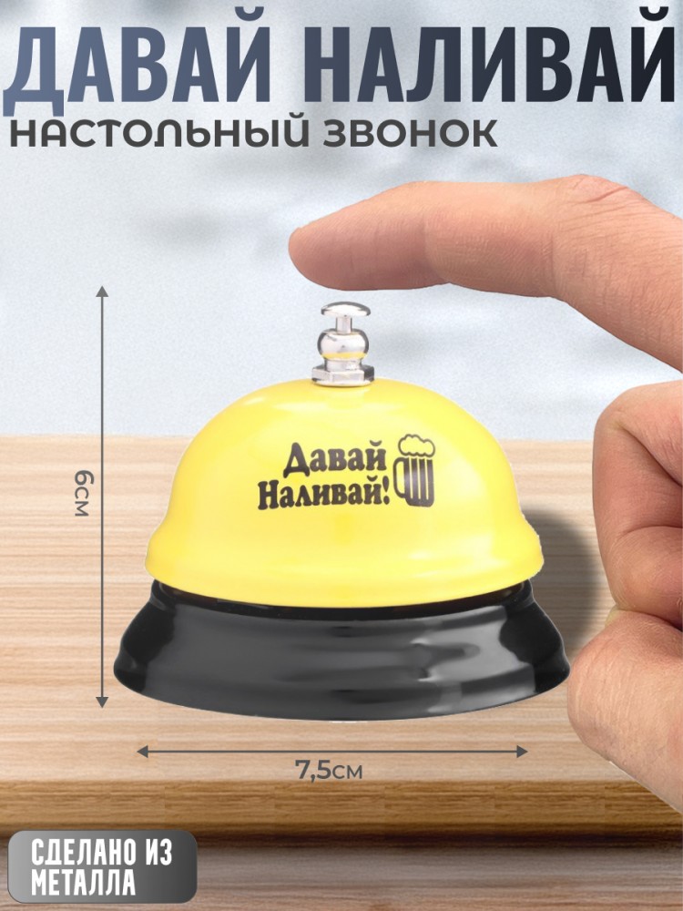 Настольный звонок с лозунгом "Давай наливай" станет веселым и практичным подарком для любителей оригинальных вещей.