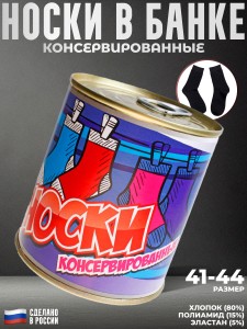 Носки в жестяной банке - это прекрасный и уникальный подарок для вашего мужчины. Эти консервированные носки упакованы в оригинальную железную баночку, которая плотно закрыта. Банка абсолютно герметична, поэтому вы можете взять эти носки с собой в любые экстремальные условия, будучи уверенными, что они останутся сухими. Носки изготовлены из наиболее современных и удобных материалов. Этот состав делает их комфортными, удобными и прочными. Кроме того, благодаря их герметичной упаковке, такой необычный сувенир станет отличным вариантом для рыбаков, охотников и путешественников.