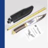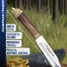 Нож изготовлен из коррозионностойкой стали с термообработкой, что обеспечивает износостойкость клинка и надёжность в эксплуатации. Рукоять из орехового дерева.