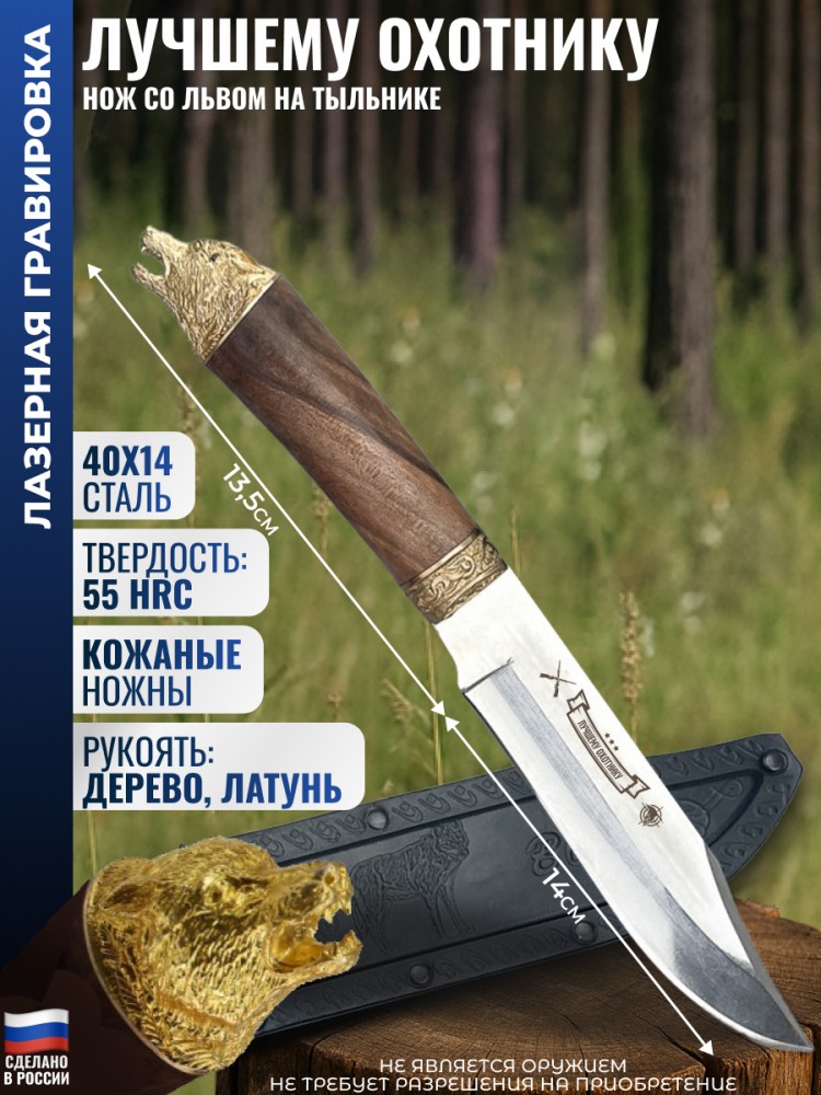 Охотничий нож в ножнах - практичный аксессуар для любителей активного отдыха, туризма и выживания. Подарочный клинок с гравировкой дополняет коллекцию холодного оружия или служит как декоративный элемент в интерьере.