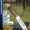 Нож изготовлен из коррозионностойкой стали с термообработкой, что обеспечивает износостойкость клинка и надёжность в эксплуатации. Рукоять из орехового дерева.