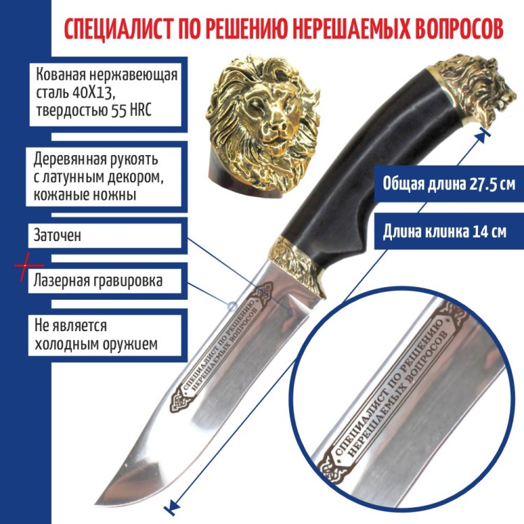 Охотничий нож считается хорошим аксессуаром как для взрослых мужчин (мужу, папе, дедушке, зятю, руководителю), так и молодому парню (сыну, брату, другу).
