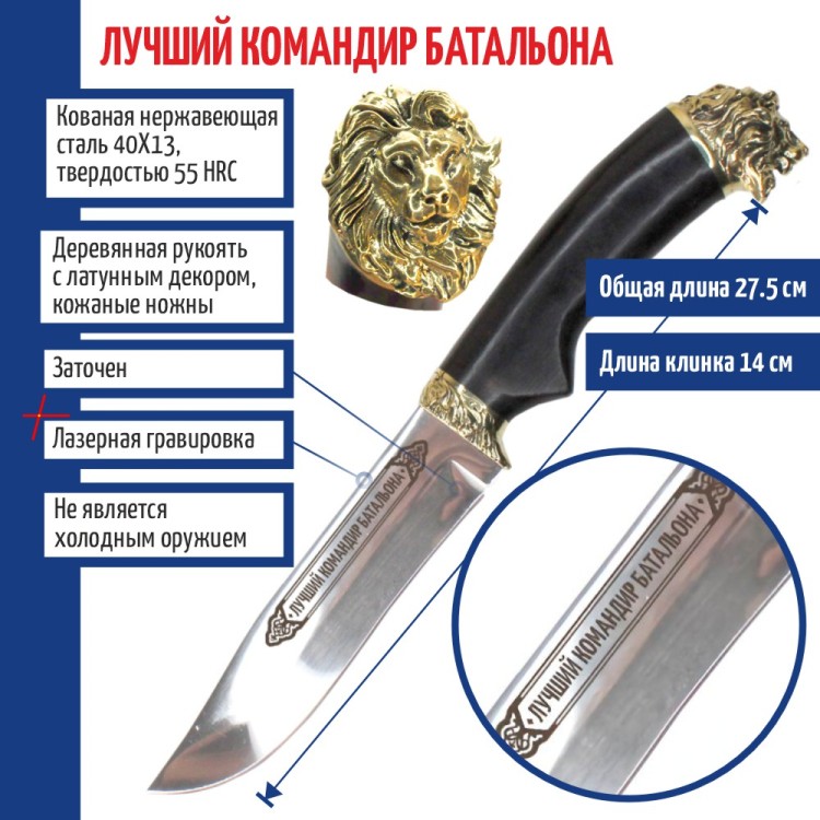 Туристический нож в ножнах станет памятным знаком уважения и признания, который будет вдохновлять на достижения, который украсит любой интерьер.
