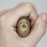 Нож выполнен из стабилизированного бивня ископаемого мамонта и дамасской стали. Рукоять инкрустирована символами с двух сторон, латунью под золото. Уникальный авторский нож.