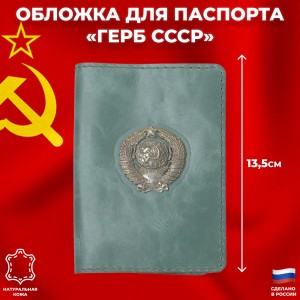 Зеленая обложка с бронзовым гербом СССР - стильный и практичный аксессуар, подчеркивающий ваше уважение к истории.