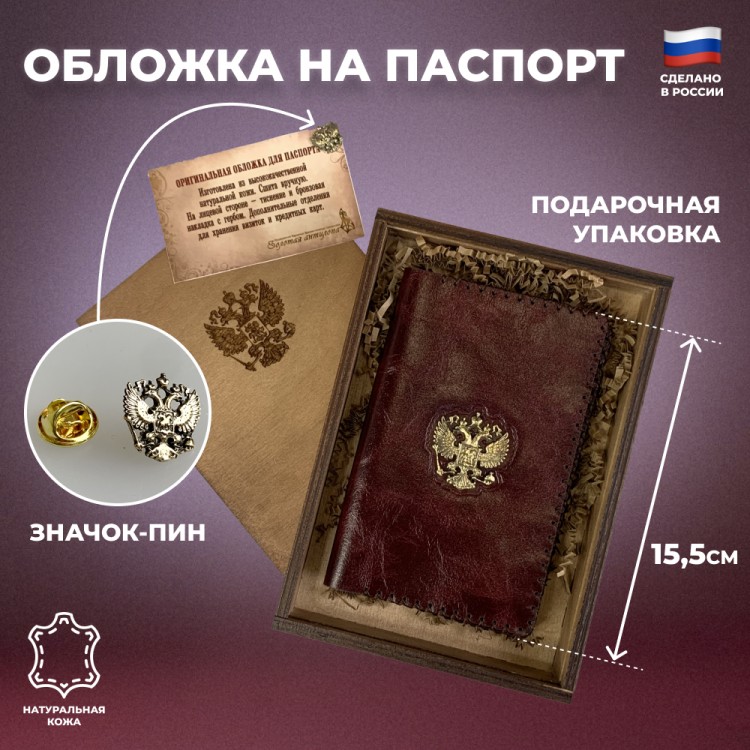 Бордовая обложка с гербом России - символ надежности и уверенности. Идеальный способ выразить свою любовь к Родине.
