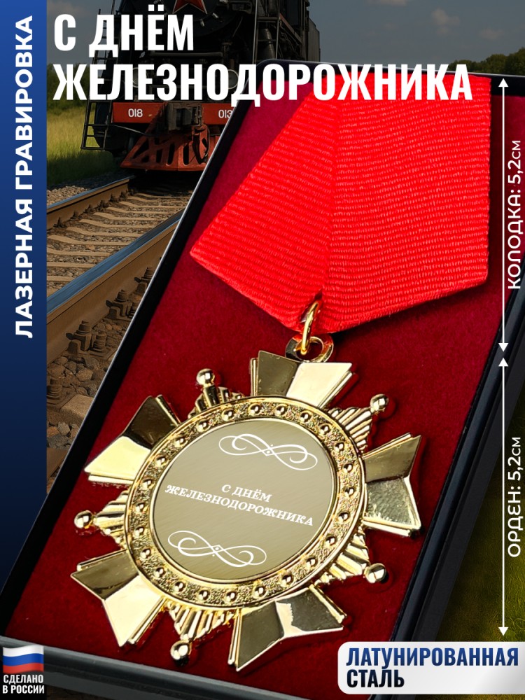 Сувенирный орден "С Днём железнодорожника" - описание товара