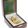 На части изделия нанесена позолота посредством технологии электролиза (гальваническое золотое покрытие). Толщина слоя составляет 5 мкм. Согласно действующему законодательству изделия со слоем позолоты на недрагоценном металле не подлежат опробованию (проба не ставится), а сами изделия не считаются ювелирными. По этой причине никаких сертификатов или иных сопроводительных документов для продажи или перевозки такого товара не требуется.