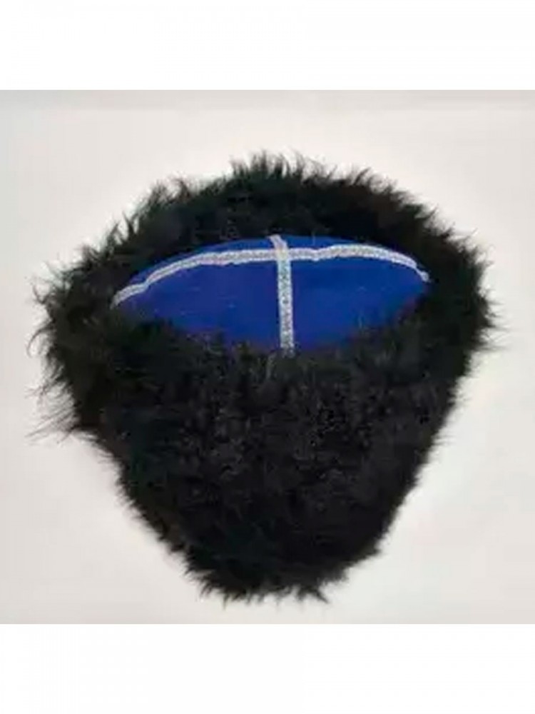 Традиционная папаха Кубанка с синим верхом из искусственного каракуля, украшенная серебряным галуном, идеально подойдет для тематических мероприятий или в качестве уникального аксессуара.