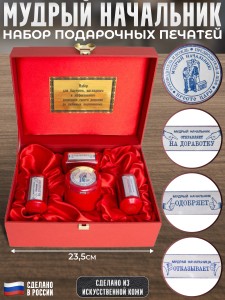 Набор подарочных печатей "Мудрый начальник - станет отличным дополнением на рабочем столе руководителя, ценящего юмор и оригинальность.