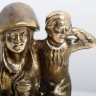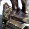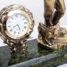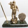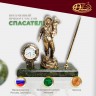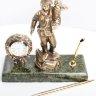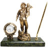 Письменный прибор с фигурой спасателя из бронзы и встроенными часами в корпусе из змеевика. Композиция для оформления интерьера кабинета или домашнего рабочего пространства.