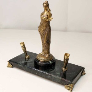 Эксклюзивный набор для письма, включающий элементы из бронзы и змеевика, подчеркнет статус и утонченный вкус его владельца.