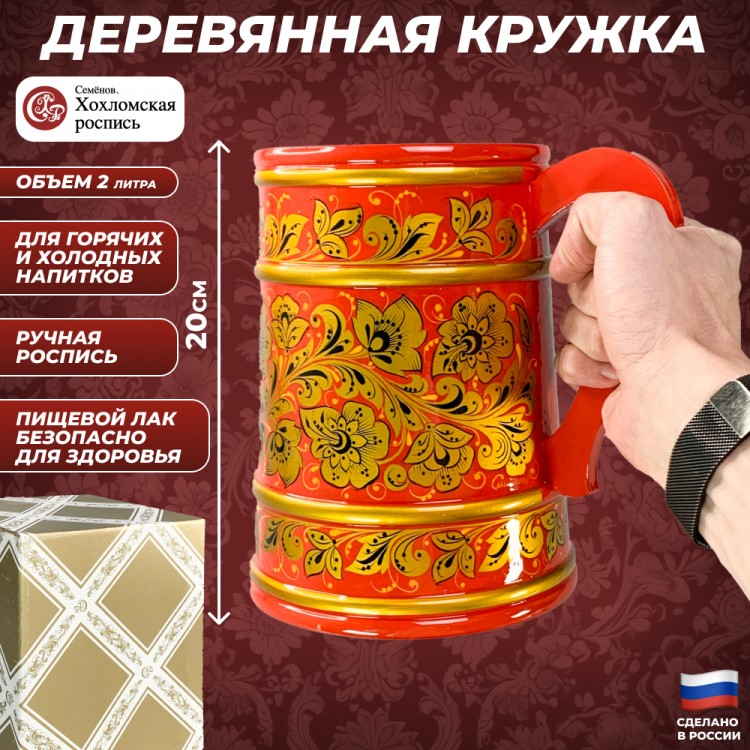 Деревянная пивная кружка "Хохломская. Торжество" (2000 мл) - описание товара
