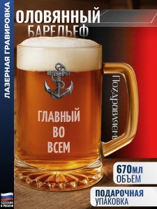 Материал: Олово (барельеф с якорем), прочное стекло (Na Ca Si) натрий-кальций-силикатное (кружка). Подарочная картонная коробка с рисунком, надписью "Поздравляем" и окошком для пожелания. Страна производства кружки: Россия (г. Бор, Нижегородская область). Бренд посуды: Pasabahce (Турция) Полезный объём: 500 мл (под края 670 мл). Размер: 15 x 13 x 10 см. Упаковка: Картонная коробка с наполнителем. Можно мыть в посудомоечной машине. Не использовать в микроволновой печи. Лазерная гравировка нанесена с одной стороны (как на фото, под металлическим барельефом). Подарочная пивная кружка с гравировкой прекрасно дополнит коллекцию кубков, фужеров и чашек на кухне. Пригодится на вечеринке, в бане, на работе (для чая, кофе) или для просмотра футбола.. Большой сувенирный бокал с ручкой - интересное и креативное решение, из которого приятно пить пиво и другие напитки. Оригинальный подарок на любой праздник или награждение от коллектива (руководителю, коллеге). Он подчеркивает не только личные успехи, но и благодарность за труд и преданность делу. Сувенир актуален в качестве сюрприза мужу, взрослому родственнику (отцу, дедушке) или преподавателю. Такая красивая атрибутика подходит для множества знаковых дат и событий дома или в офисе, таких как юбилеи родителей 23 февраля, Новый год или день рождения (ДР). Считается хорошим подарком как для мужчин (папе, сыну подростку, брату, другу, парню), так и для любимой женщины на 8 марта. Моряк - человек, который знает, что такое дисциплина, ветер и долгие вахты. Это профессия мужества и стойкости. Моряк, капитан или курсант по достоинству воспримет символ, передающий гордость за флотскую службу и прочную связь с морем. 4455