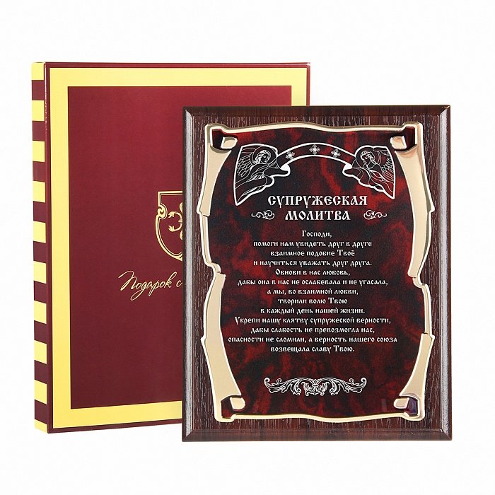 Теплая и сердечная плакетка с молитвой для супругов, выполненная из дерева и металла, станет напоминанием о важности семейных уз.