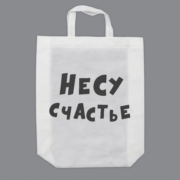 Практичная и вместительная подарочная сумка "Несу счастье" из нетканого материала выдерживает до 15 кг, идеально подходит для покупок или как альтернатива подарочному пакету.