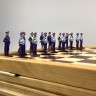 Комплектация: Деревянная доска, Оловянные шахматные фигуры.