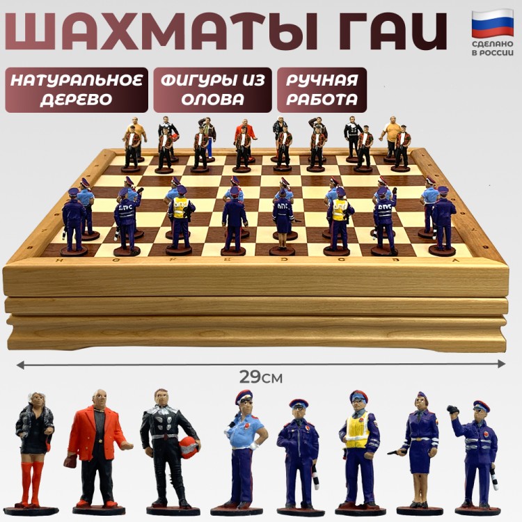 | Комплектация | Деревянная доска, Оловянные шахматные фигуры |