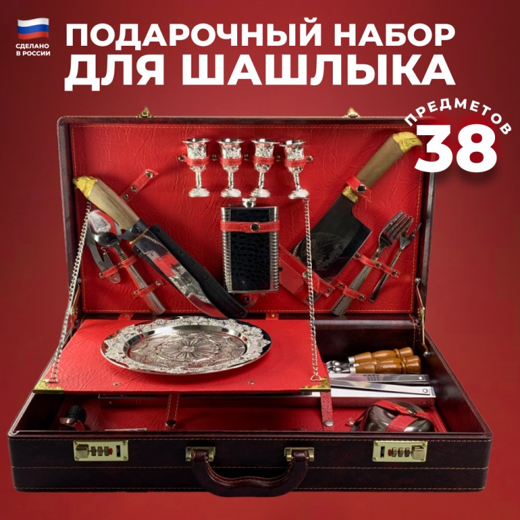 Подарочный набор для шашлыка - комплект аксессуаров для приготовления мяса на огне и подачи блюда к столу во время пикника или барбекю.
