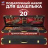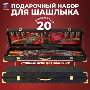Подарочный набор для шашлыка - комплект аксессуаров для приготовления мяса на огне и подачи блюда к столу во время пикника. Состав различен, но из шашлычных принадлежностей здесь есть шампуры (или решетка для гриля) и вещи для сервировки барбекю. Продаются такие сеты обычно в кейсе или в колчане, но допустима и иная упаковка.