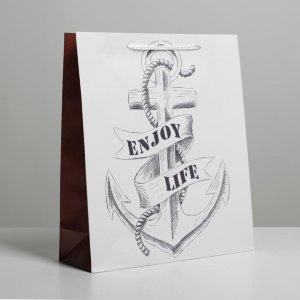 Ламинированный подарочный пакет "Enjoy Life" с шнурковой ручкой идеально подходит для упаковки подарков, добавляя яркие краски и позитивное настроение.