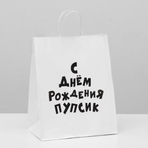 Весёлый подарочный пакет с поздравлением "С днём рождения пупсик" прекрасно подойдёт для детских подарков, делая их ещё более незабываемыми.