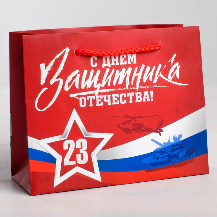 тематический подарочный пакет станет отличным дополнением к вашему подарку на 23 февраля, выражая уважение и благодарность.