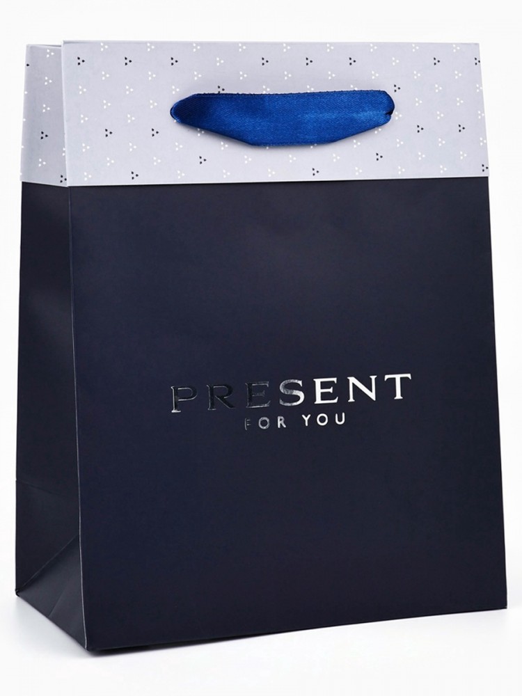 Подарочный пакет с ламинированной бумагой и ленточными ручками добавит изысканности любому мужскому подарку, подчеркнув ваше внимание к деталям.