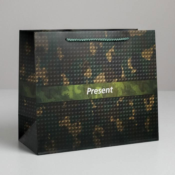 Оригинальный подарочный пакет "Камуфляжный презент" станет ярким дополнением к вашему подарку, подчеркивая его индивидуальность и добавляя элемент сюрприза.