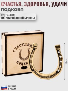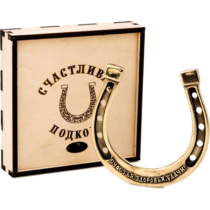 Подкова на счастье, выполненная из патинированной бронзы и упакованная в деревянную шкатулку, станет символичным и ценным подарком.