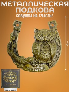 Милая сувенирная подкова с совой - символ удачи и мудрости. Идеальный сувенир для дома или офиса.