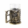Комплектация: Бронзовый подстаканник, Хрустальный стакан, Деревянный футляр.