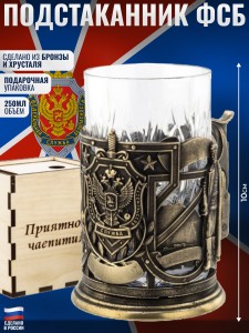 | Комплектация | Бронзовый подстаканник, Хрустальный стакан, Деревянный футляр |