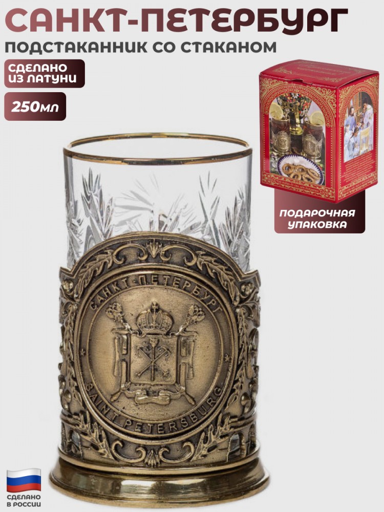Сувенирный латунный подстаканник с видами Санкт-Петербурга станет отличным дополнением к коллекции и напоминанием о городе на Неве.